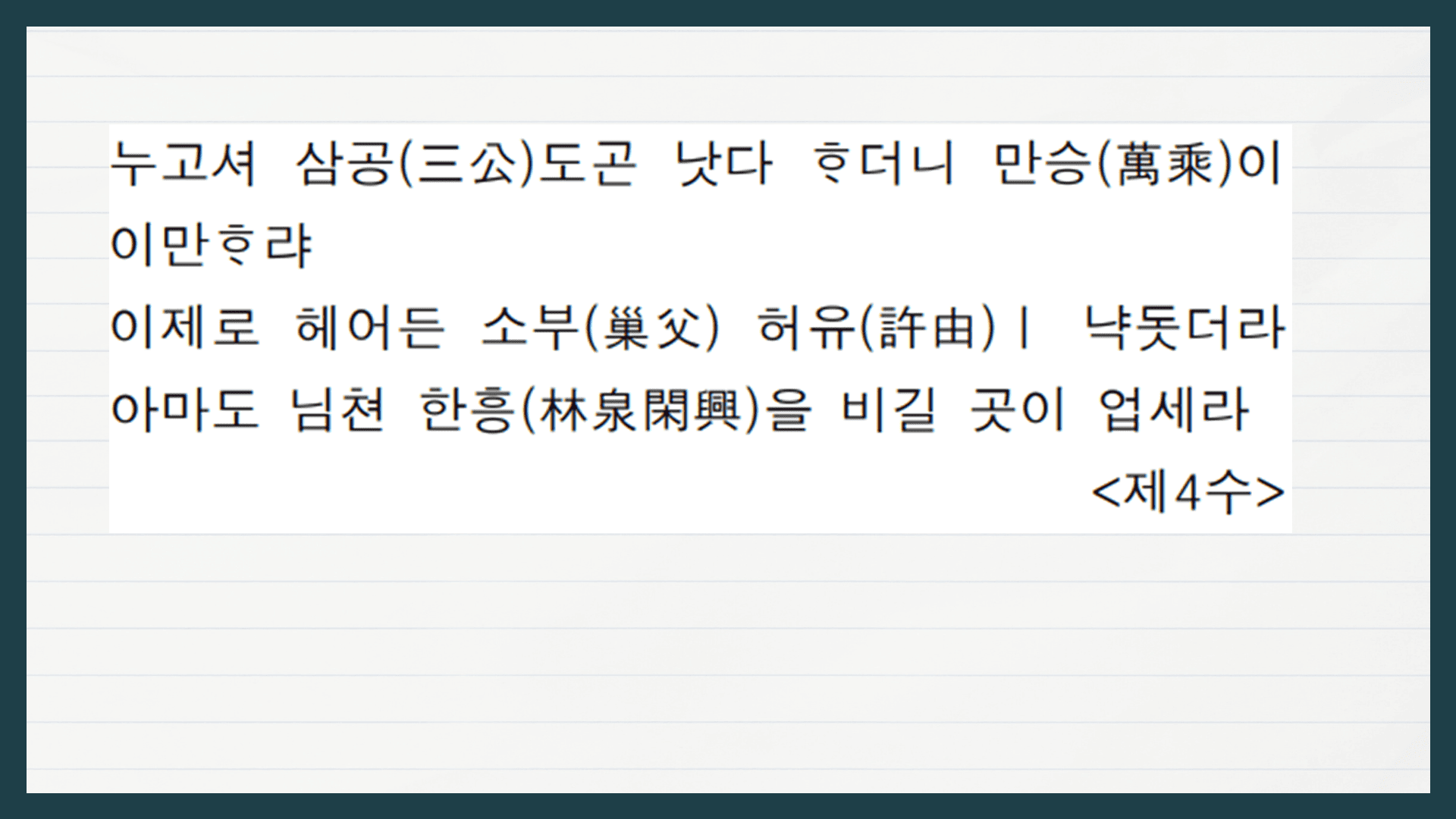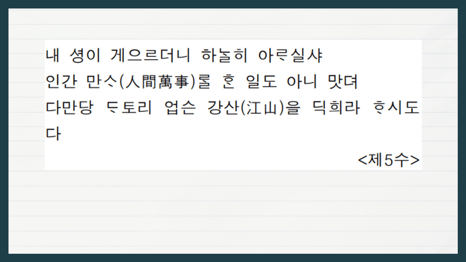 무엇보다도 고전시가를 공부할 때 가장 중요한 것은 바로 '해석'입니다.